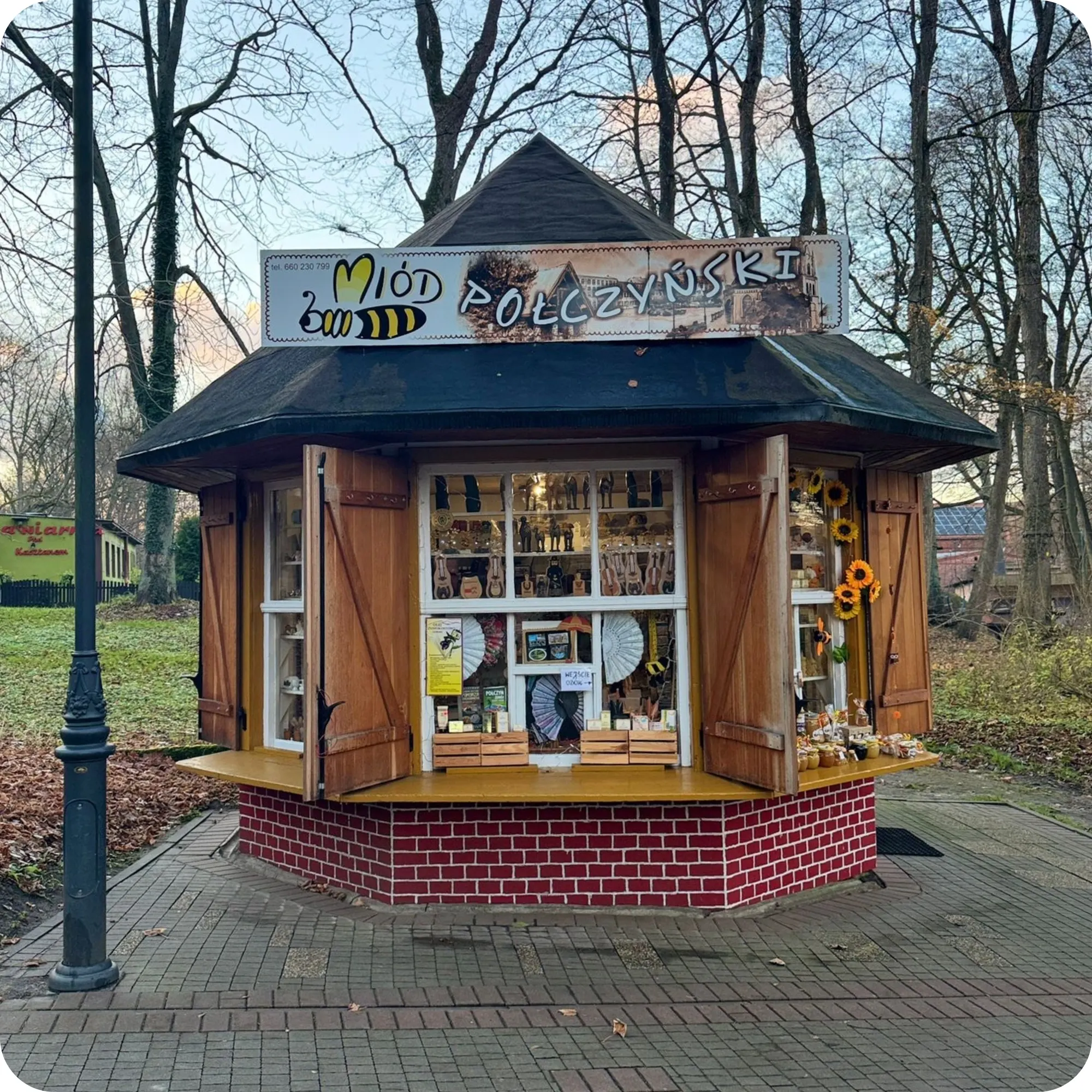 Szukaj nas w sklepiku przy muszli koncertowej. W pogodne dni wystawiamy również nasz firmowy kram przy wejściu do Parku. To idealne miejsce, by kupić unikalną pamiątkę z uzdrowiska.
